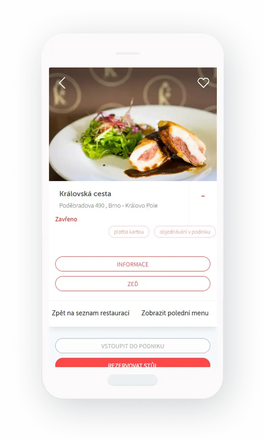 Vstoupit do portálu Já, Číšník. Po přihlášení si vyberte restauraci pro objednání v podniku nebo rozvozu.